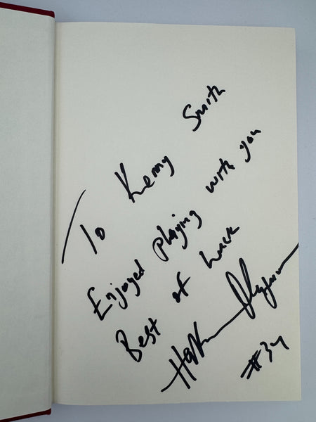 Signed by Olajuwon and inscribed to his team mate Kenny Smith. Olajuwon and Smith played together on the back-to-back champion Houston Rockets. A stand out center, Olajuwon was a member of the 1994 US Dream Team, was selected as one of the 50 greatest players in NBA history and was named to the NBA 75th Anniversary Team.